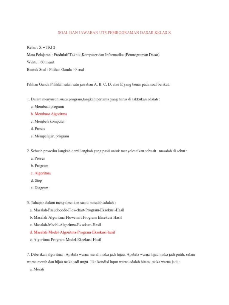 Conroh soal dan jawaban uts pemrograman dasar kelas x semester 1 dan 2 dalam. Jual pemrograman dasar (bidang tekominfo c2) smk. Soal dan jawaban uts pemrograman dasar kelas x docx. Soal pilihan ganda dan jawaban dasar struktur algoritma soal pilihan ganda . Soal uas desain grafis smk .