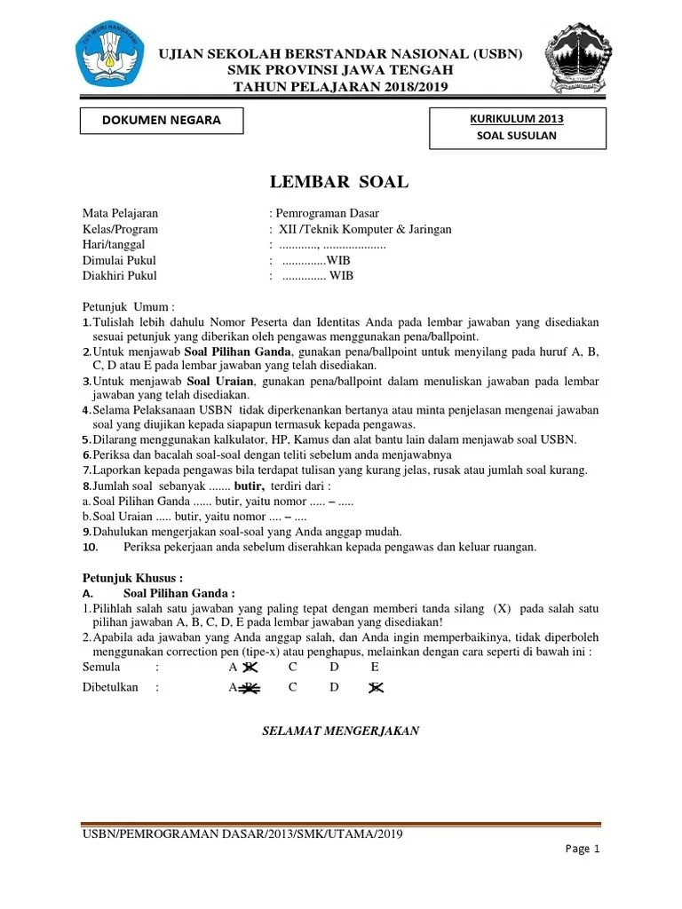 Soal uas desain grafis smk . Adalah x dengan nilai awal 1 dan nilai akhir 10, tanpa increment (atau secara default. Soal dalam bentuk pilihan ganda 40 butir dan 5 soal essay. 0 response to contoh soal dan jawaban pemrograman dasar kelas 10 tkj 2019. Contoh soal tentang bahasa pemrograman dasar untuk siswa dan guru, soal pilihan ganda tentang pemrograman dasar ini sudah dilengkapi dengan jawaban.